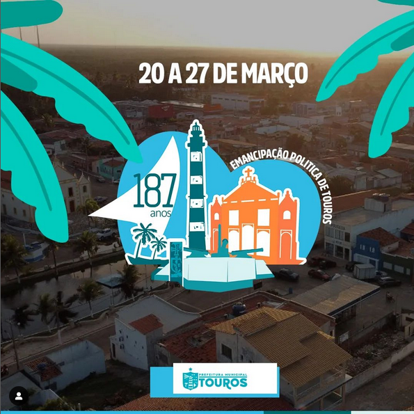 PREFEITURA DE TOUROS DIVULGA PROGRAMAÇÃO EM ALUSÃO AOS 187 ANOS DE EMANCIPAÇÃO POLÍTICA DO MUNICÍPIO.