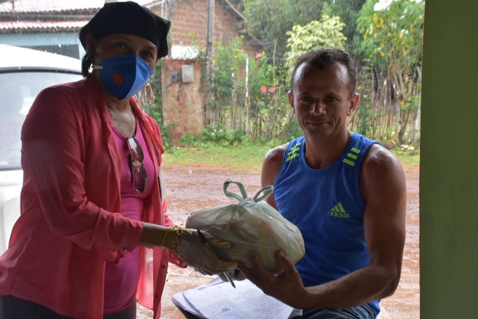 As equipes da prefeitura deram continuidade hoje (21) a entrega dos kits da merenda escolar em domicílio nas residências mais distantes das unidades escolares.