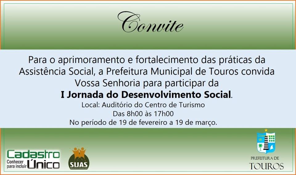 A Prefeitura Municipal de Touros, através da Secretaria Municipal de