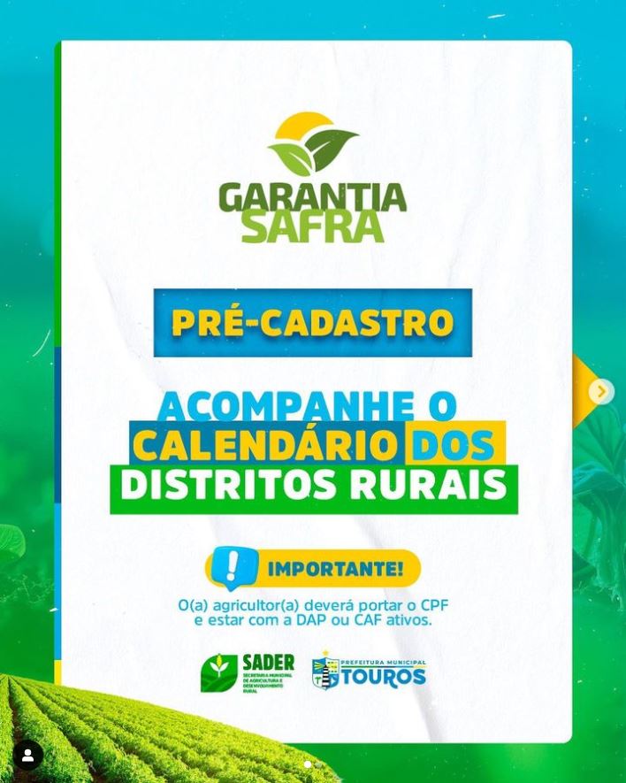 A Prefeitura Municipal de Touros, através da Secretaria de Agricultura,
