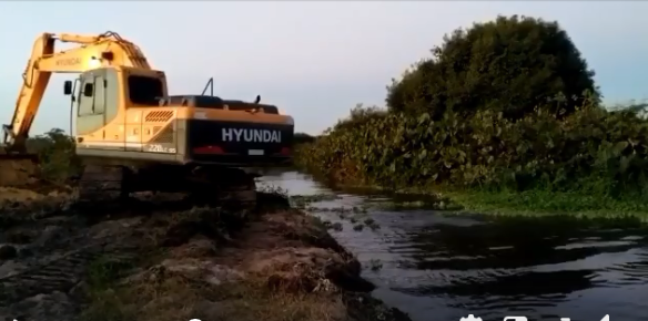 Prefeitura trabalhando na limpeza e drenagem do Rio de Santa Luzia.