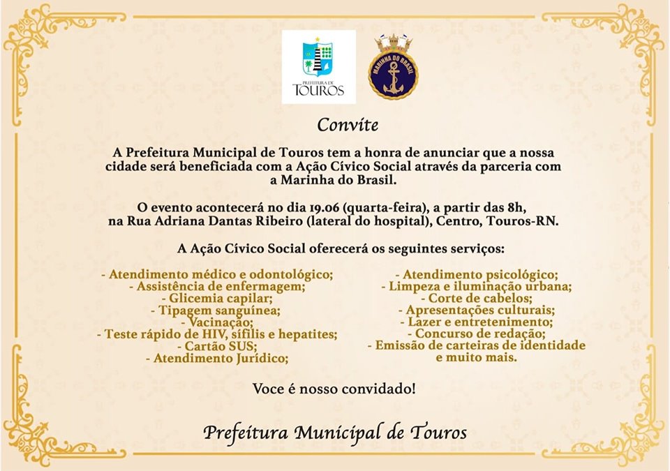 A Prefeitura Municipal de Touros através da Secretaria Municipal de