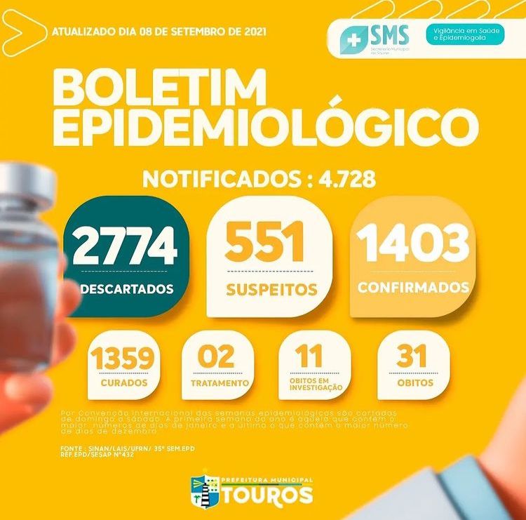 A Prefeitura Municipal de Touros, através das secretarias de saúde