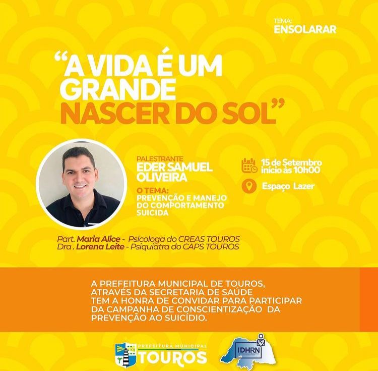 PREFEITURA DE TOUROS PROMOVE PALESTRAS E AÇÕES EM ALUSÃO AO SETEMBRO AMARELO