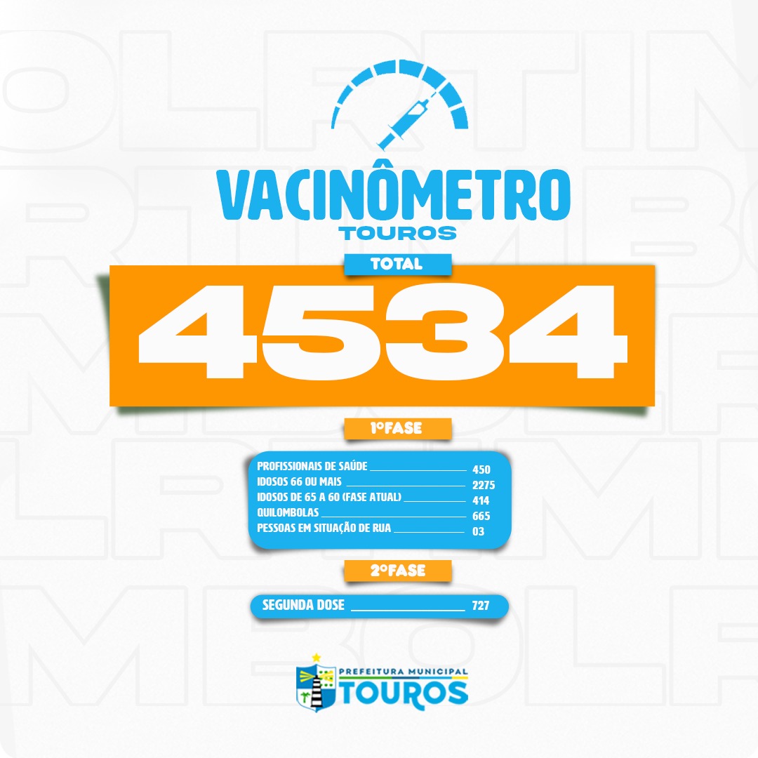 PREFEITURA DE TOUROS DIVULGA DADOS ATUALIZADOS DO VACINÔMETRO