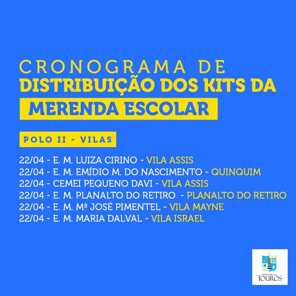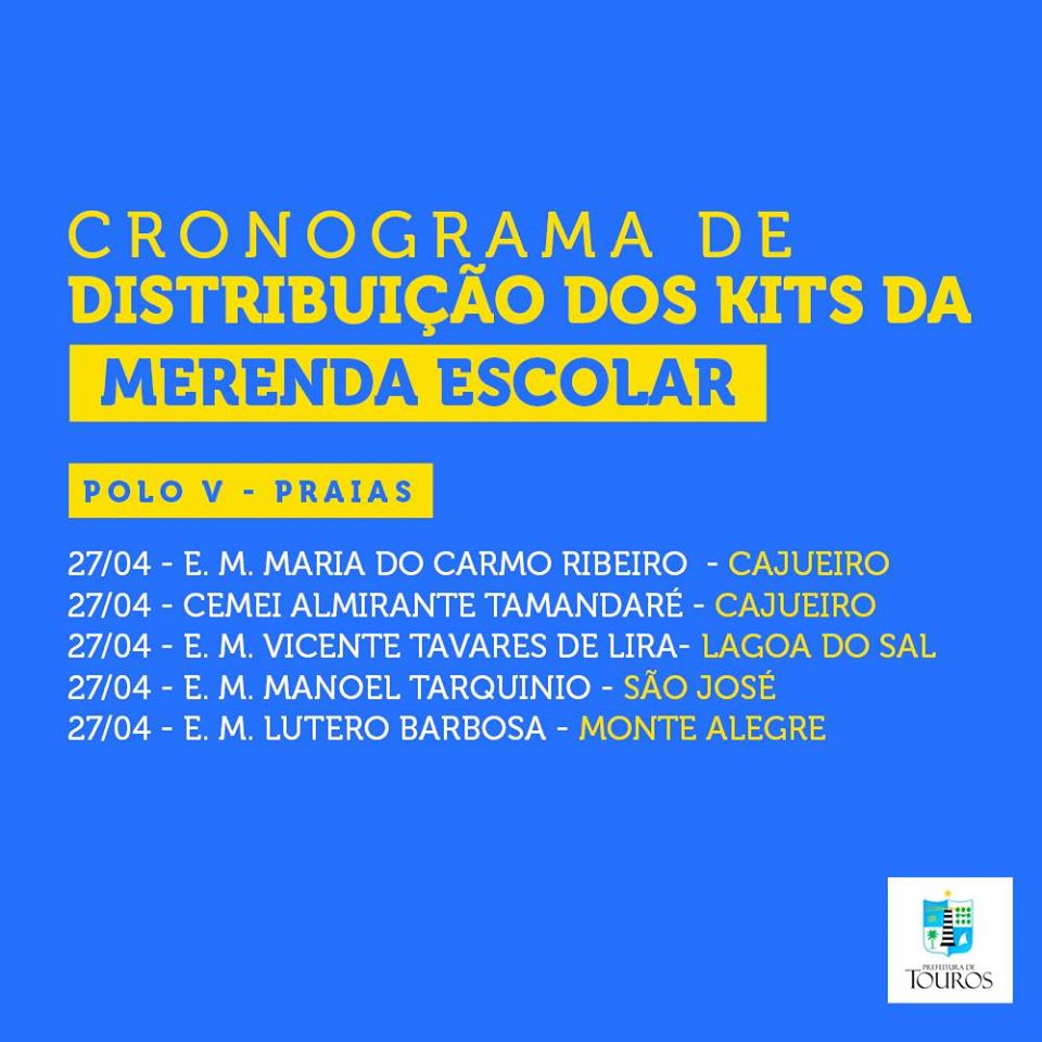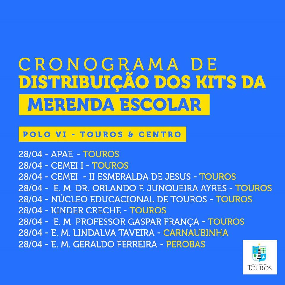Cronograma completo de distribuição dos kits da merenda escolar nas escolas das comunidades e na zona urbana.