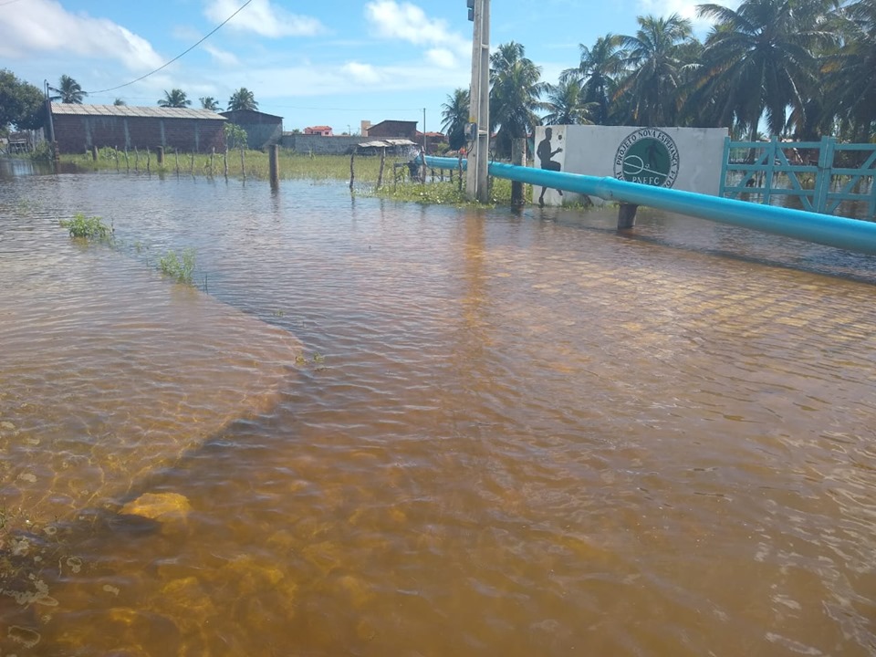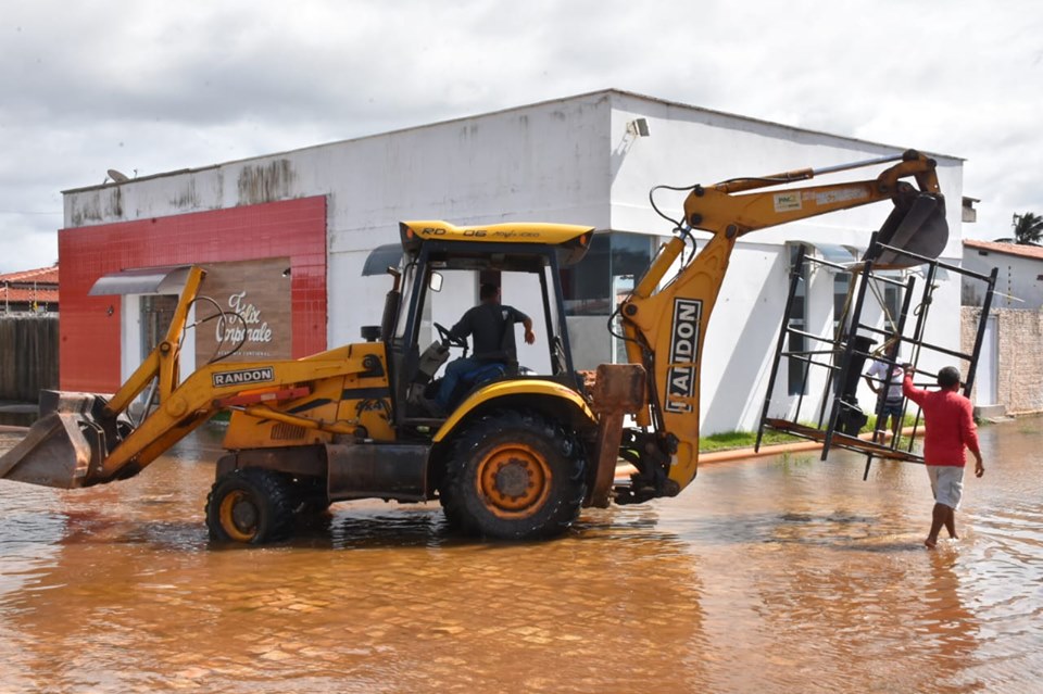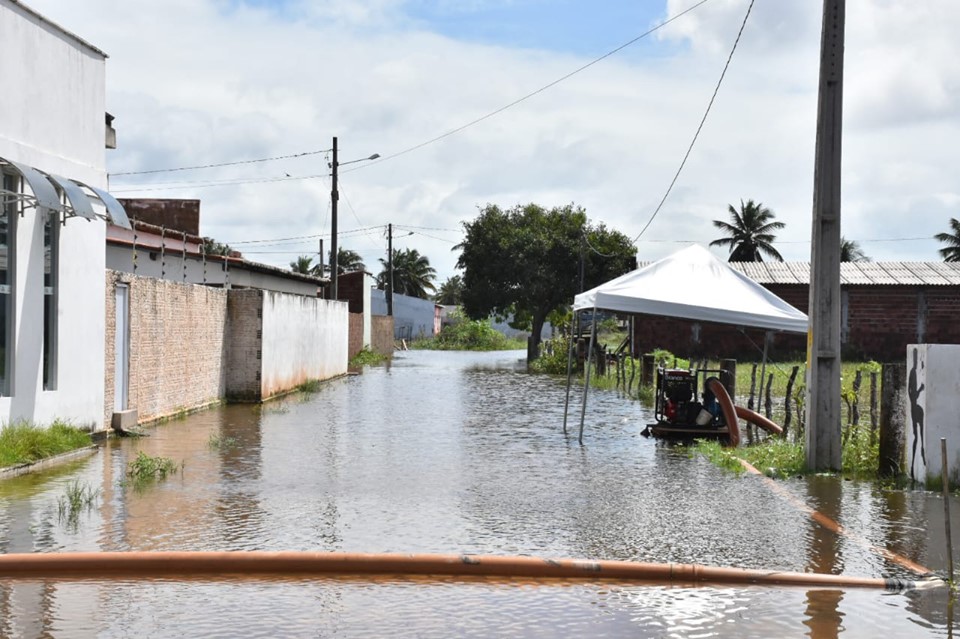 Em razão da situação de emergência causada por alagamentos, e através da intermediação do Governo do Estado do RN e Defesa Civil, a CAERN fez ao nosso município a cessão de uso de uma bomba com vazão de 162m3/h para dar mais celeridade ao processo de drenagem das áreas afetadas escoando o volume de água para a praia através de valas que também foram abertas pelas máquinas.
