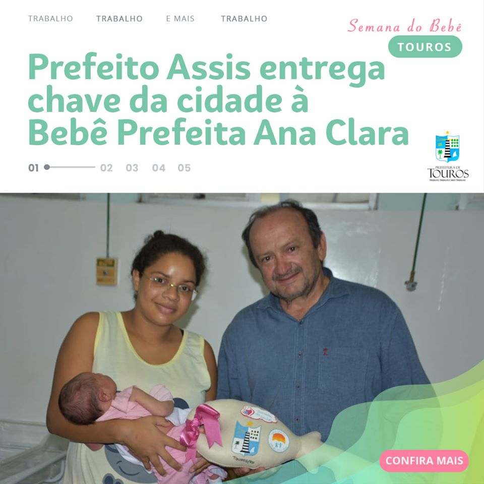 A Bebê Prefeita Ana Clara recebeu a visita do Prefeito Assis do Hospital. Na oportunidade, Assis entregou a chave da cidade e um kit para recém-nascido. O Prefeito disse que ”O objetivo desse gesto simbólico é chamar a atenção da sociedade para a importância dos cuidados e atenção às crianças do 0 aos 6 anos de idade, período fundamental ao desenvolvimento biopsicossocial da criança.”