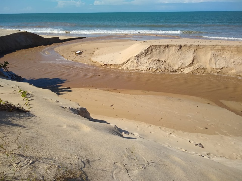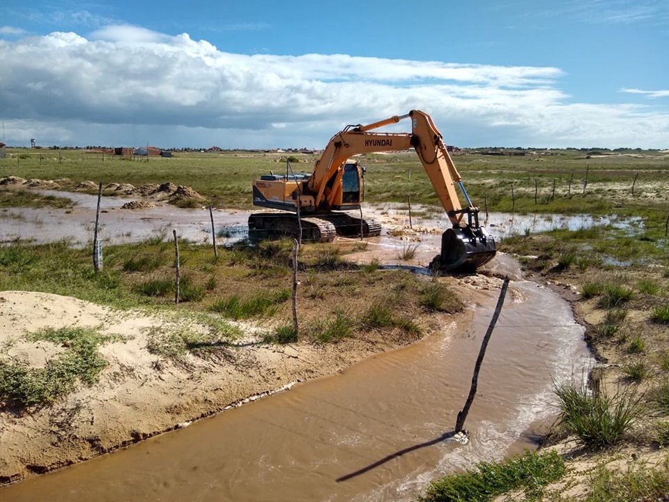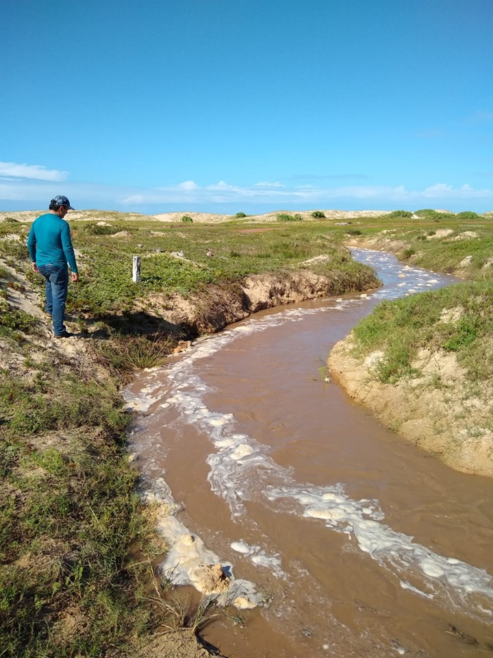 Aproveitei para conferir no Portal de Touros o andamento dos trabalhos e fiquei bastante satisfeito em ver a água já escoando em bom volume em direção à praia através das valas abertas pela máquinas. O trabalho madrugada adentro valeu a pena. E vamos continuar trabalhando forte!