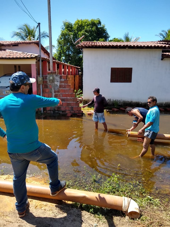 O vereador Pedro do Cajueiro, representante da comunidade na Câmara de Vereadores, esteve ao meu lado durante o trabalho da equipe e máquinas. Amanhã será instalada mais uma bomba no Cajueiro noutro ponto de alagamento.