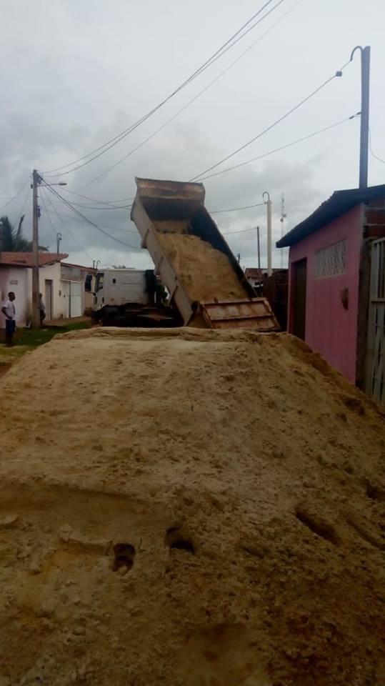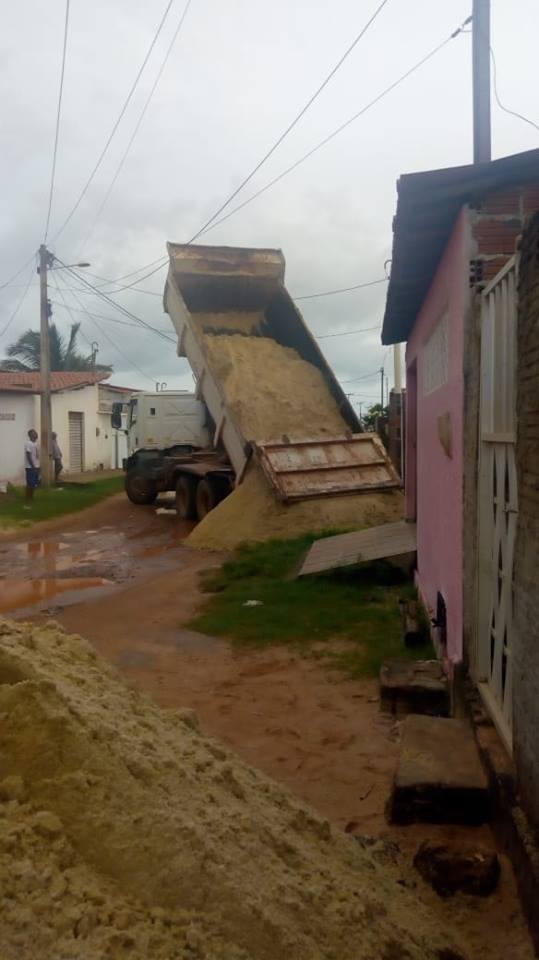 A Prefeitura Municipal de Touros durante todo este sábado disponibilizou carradas de areia a pedido dos moradores do bairro Frei Damião para aterramento dos quintais que alagam durante as chuvas.