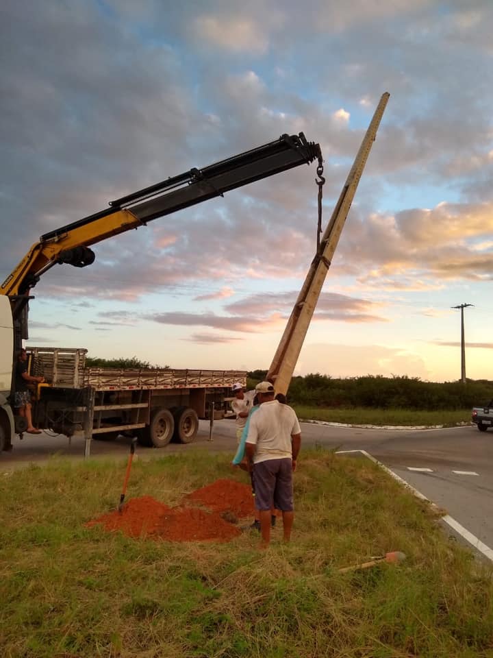 Prefeitura de Touros iniciou as instalações de iluminação pública nos trevos dos distritos de Santa Luzia e Cajueiro.