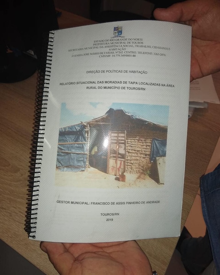 A Prefeitura Municipal de Touros protocolou hoje Relatório Situacional das moradias de taipa localizadas na área rural do município de Touros/RN.