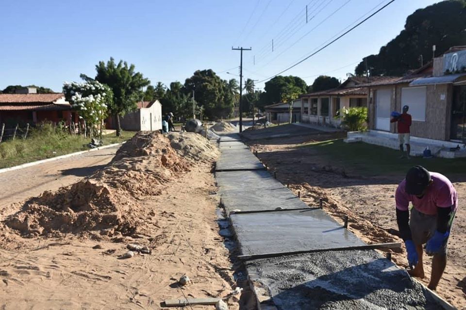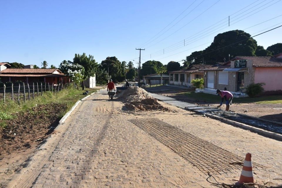 A Prefeitura de Touros finalizou o calçamento no centro de Boqueirão e agora está trabalhando nas calçadas.