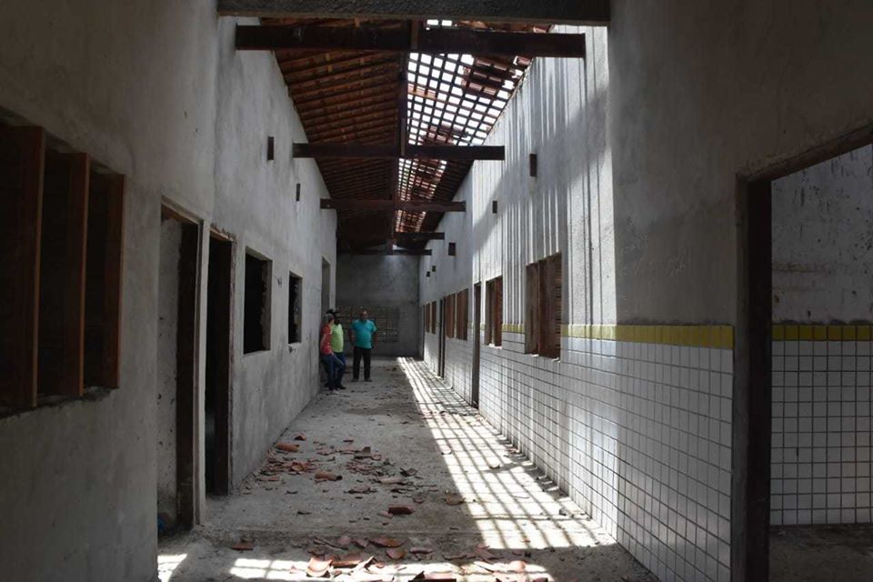 A Prefeitura de Touros retomou a obra abandonada há cerca de nove anos, da Escola Municipal Manoel Tarquínio, localizada no distrito de São José.