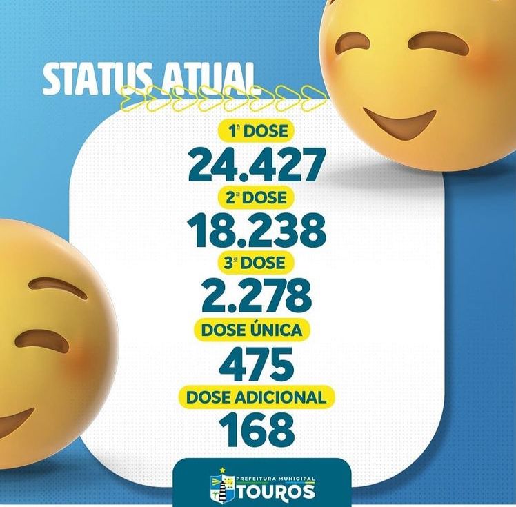A Prefeitura Municipal de Touros, através da secretaria de saúde, divulga os dados do vacinômetro atualizado no nosso Município.
