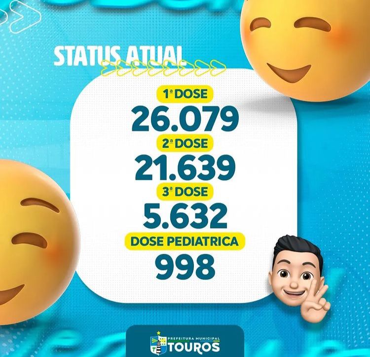 A Prefeitura Municipal de Touros, através da Secretaria de saúde, divulga mais uma atualização do vacinômetro para a população.
